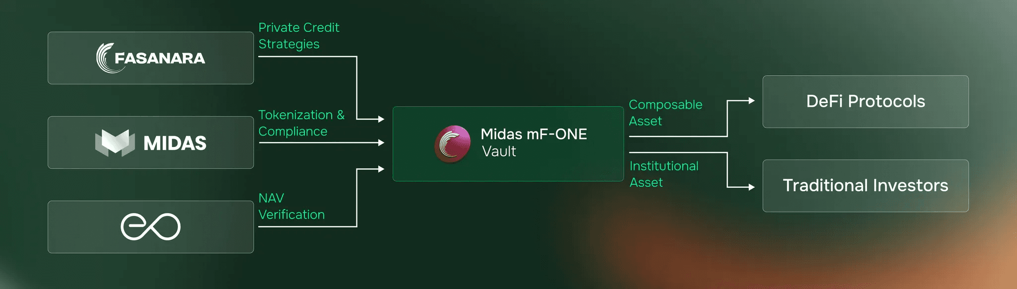 The model works because each party focuses on their expertise. Fasanara manages assets. Midas handles tokenization and compliance. EO Network verifies the data. The result: composable institutional DeFi.